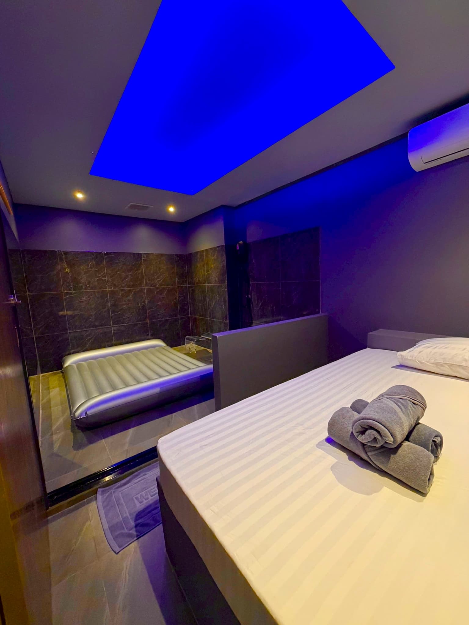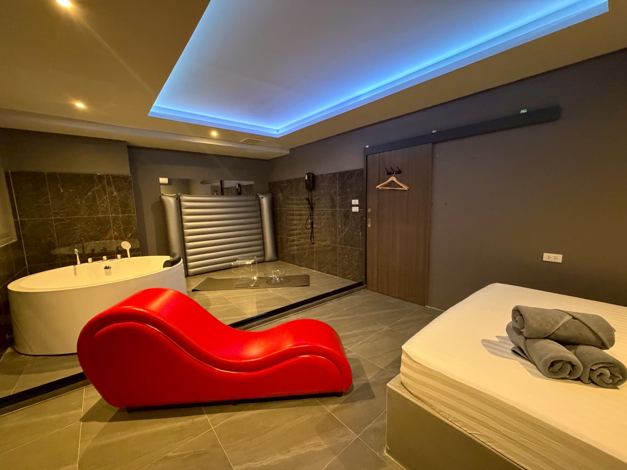 VIP room includes everything from the standard room, with more space and a deluxe NURU bed and Jacuzzi.